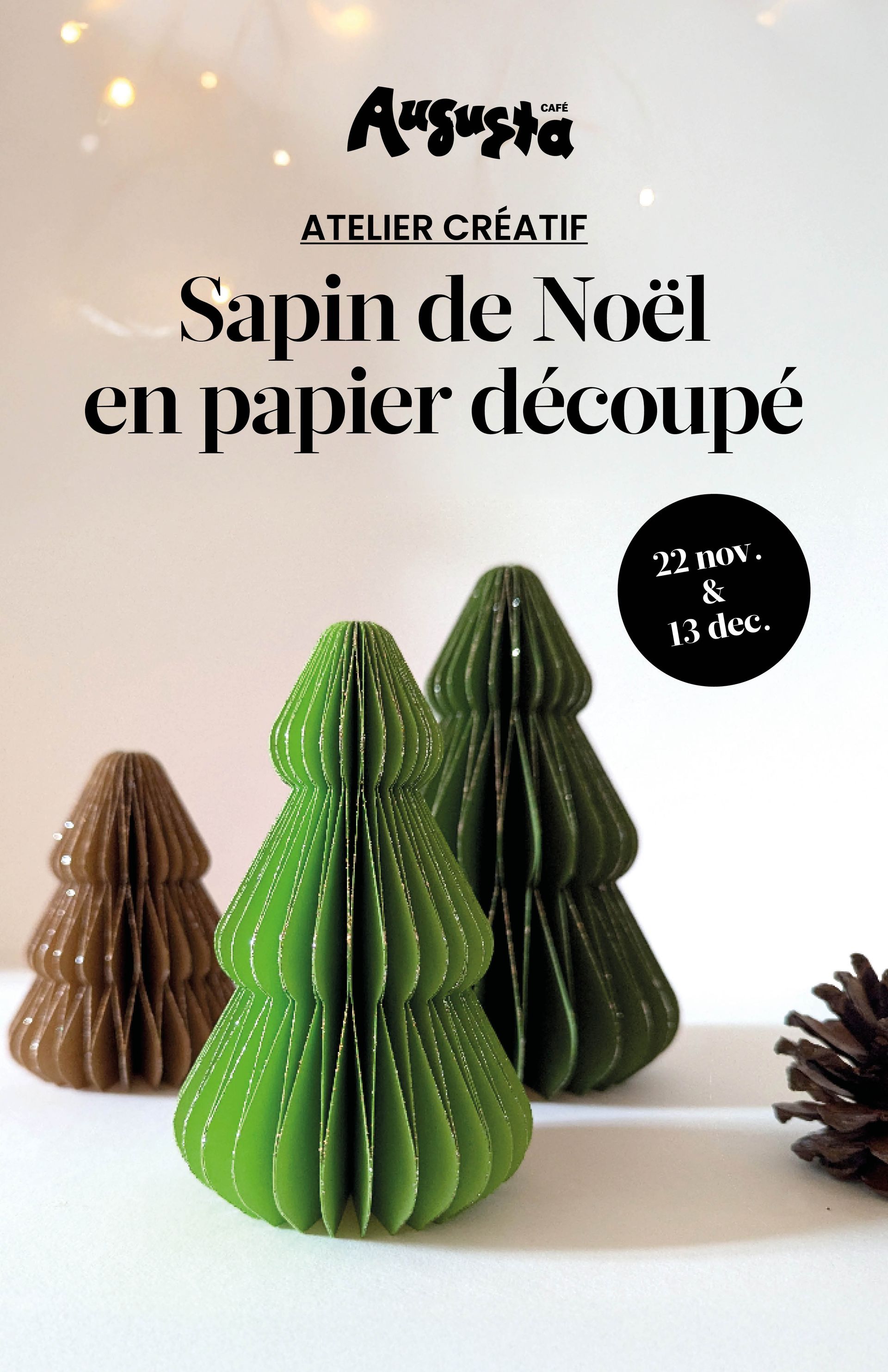Participe à un atelier créatif pour confectionner trois sapins en papier, dans une atmosphère conviviale et chaleureuse ! 🌟